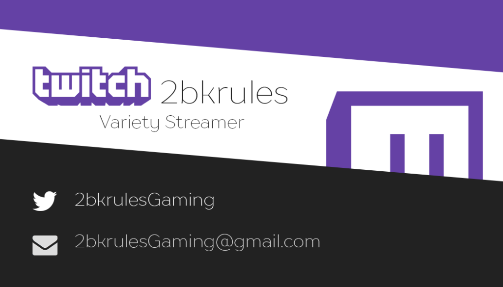 In order to create a business card suitable for him I had to provide his audience with his username for Twitch and Twitter along with his gamertag, 2BKRules.