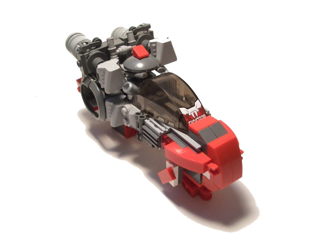 Sorry the photograph didn’t turn out the bet. It is light blue for anyone interested. I was trying to imitate Fredoichi although I ended up matching his most recent fighter almost exactly with colors. For BrickWorld. I will probably add a few stickers to it before I have to pack up. I also just noticed the border around the photo. Argh. Gimp has been doing this a lot to me lately. Thanks to ‘Vid for posting the style of photography he ended up inspiring me to use.