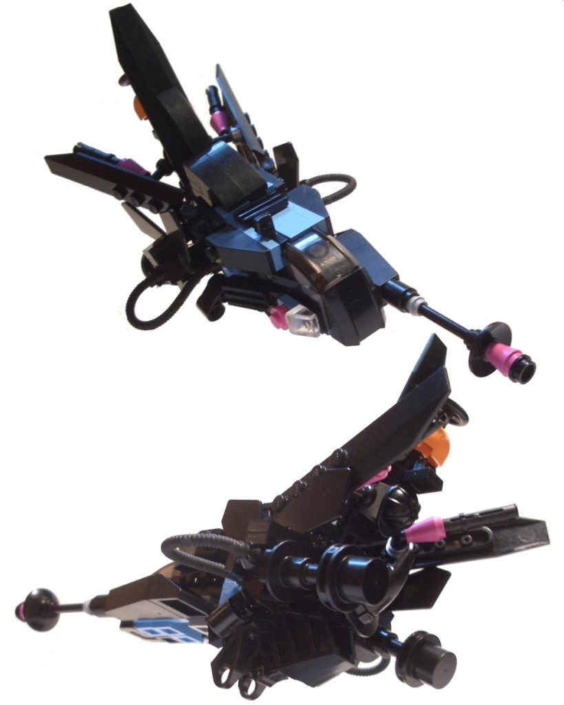 The latest style of Space flyer from Japan, Earth sports a fantastic green and sleek black color scheme and looks like a real racer. The Yatamabishia features the latest in comfort and luxuries available in space. You will also find sleek curved fins the looks great when in motion, and new sporty nose, and great mileage for flying from galaxy to galaxy. Featuring many techniques I have seen floating around Flickr, TBB, BrickShelf, etc., etc.