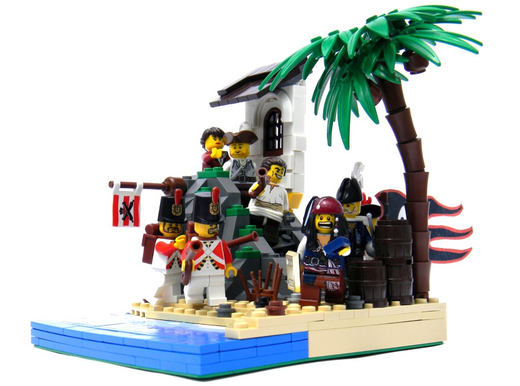 A quick tablescrap I built yesterday in about two hours. Just a quick thing to make use of my Pirates of the Caribbean parts some more. (Love them) and because I’m growing a little tired of building my castle display for BrickFair.