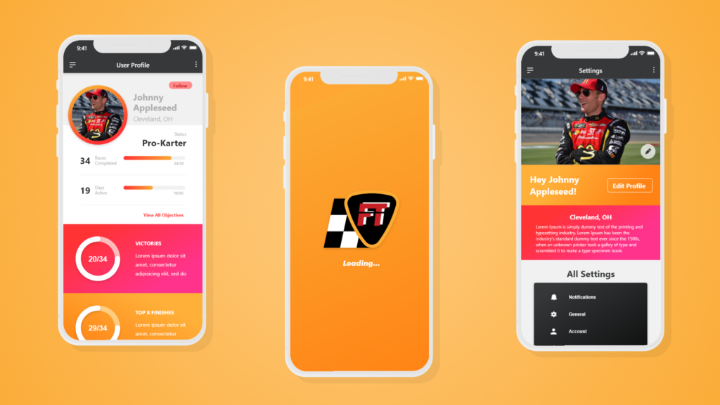 I imagined a Go-Kart track could benefit from a mobile app to help build up their community and customer loyalty. I figured drivers could track scores, complete challenges, and compete against their friends.