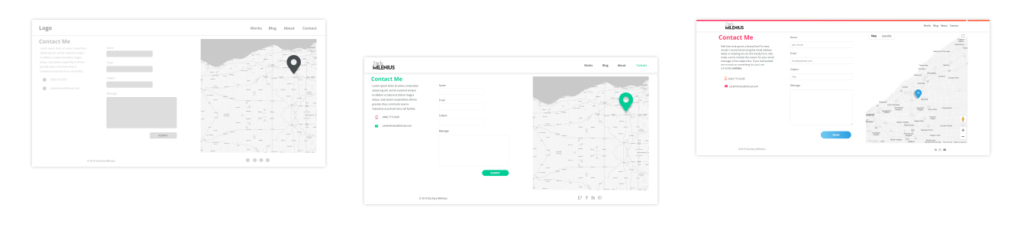The design of the contact page didn’t really change, except before the contact page went live I decided to consolidate the amount of colors on the site. The green used in the mockups didn’t end up making the cut since it blended the least with the red I decided to focus the site around.