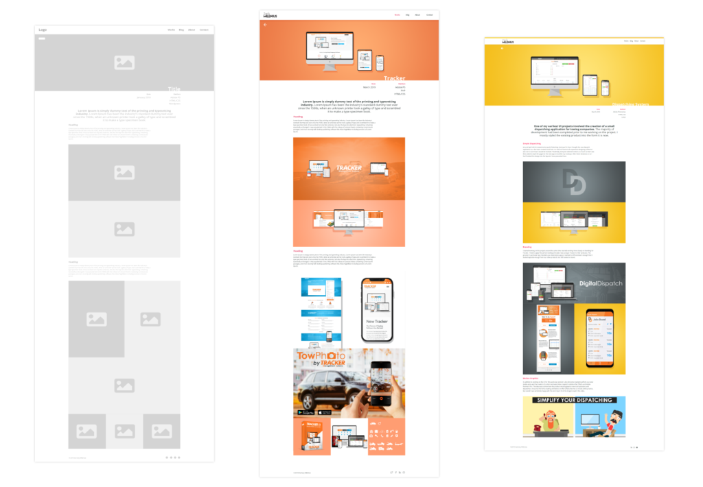 I quickly realized that problem with designing for yourself is that if you do not have a stop date in mind you can carry on endlessly designing dozens of page variations. Thankfully, after only a few failed attempts I came up with a plan. I drew up wireframes, pre-made content for pages/mockups, and I managed to keep myself to about 2 weeks of designing and redesigning.