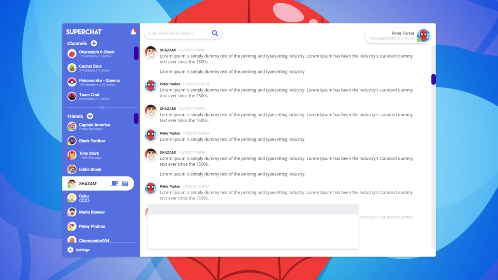 A design for a chat client. Ended up looking something like a hybrid between Slack and Discord. I think I really need to follow this one up as we start discussing chat clients at work. I think I definitely still need some practice with this amount of content/actions. Good practice though!