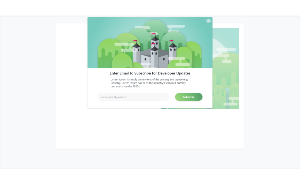 A subscribe notification. At Tracker we had a high usage of modals throughout the product. Not necessarily my decision 🙂 but I though it would work much better from something like a simple sign-up form since it has limited content and can keep the majority of this “extra” information away from the main content on the site.