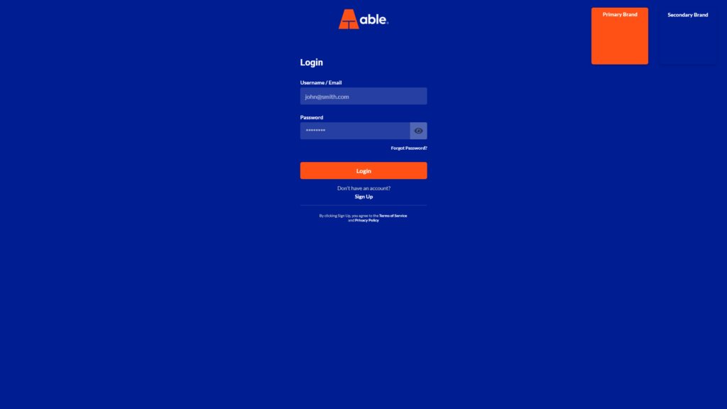 This was an exploration I did for Able a while back that never happened so I can share this now. I was trying out some ideas I had for how you could use white opacity to more effectively include client brand colors within the product. While there was only occasional sentiment around improving brand identity within the product I think I may have taken it to 100 here with how much the brand color would get used on that login page!