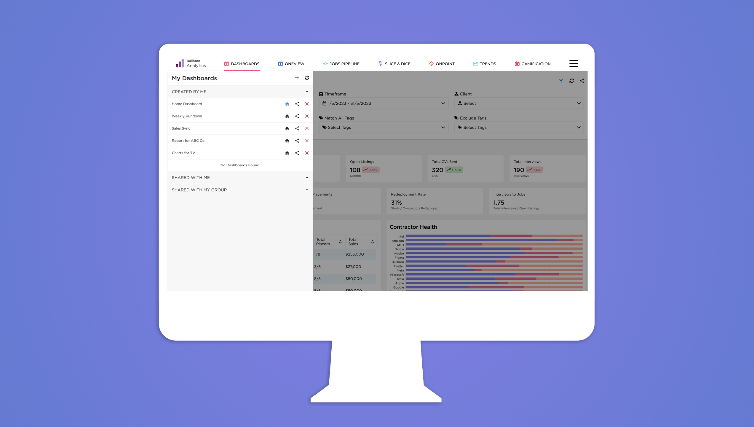 Designing Bullhorn Analytics’ first dashboard experience from the ground up.